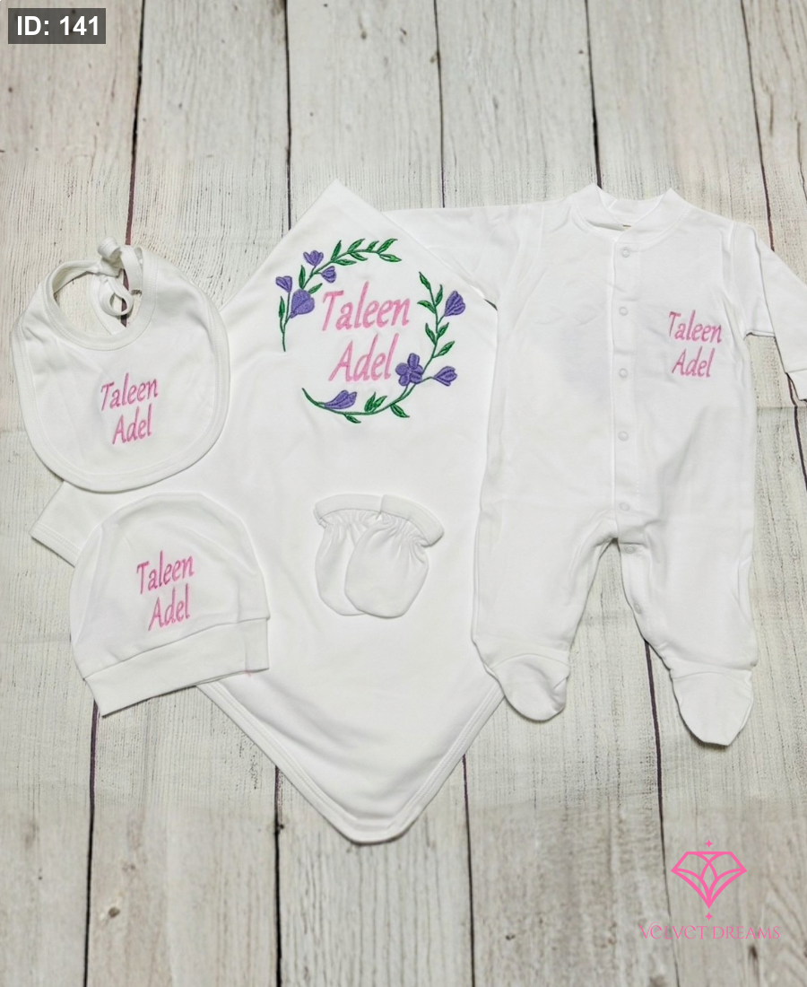 طقم بيبي بتطريز اسم البيبي عليه